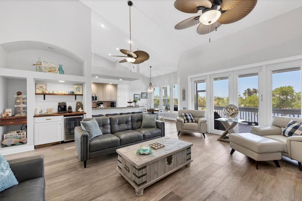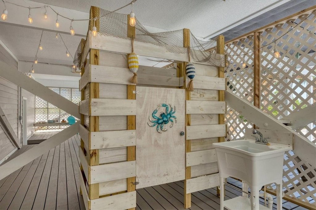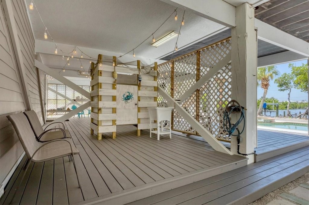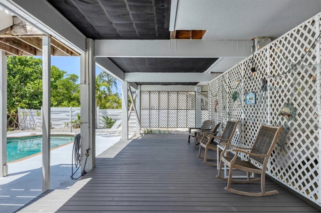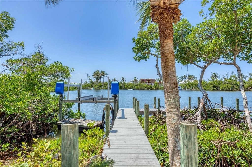 If you're looking for a the traditional life style (Florida Charm) on a barrier island in Southwest Florida, you've just found your paradise. Palm Island offers 7 miles of white sandy beaches for morning or sunset walks. Explore the island abundance of Florida flora plus wild and marine life. This bridgeless barrier island is accessible by a short ride on the car ferry, so you can drive your car directly to your home. This home is located on the paved road and is just a short distance from the ferry landing and an easy stroll to your deeded beach access area. This home offers 3 bedrooms, den/office, 3 full baths, in ground pool/spa. Go fishing just steps away from the backdoor onto your deeded private dock and boat lift located on Old Bocilla Pass that offers great views or a short boat ride away from the ICW and the Gulf of Mexico. Following are features of this newly renovated and customized home: A newer metal roof with gutters & downspouts, all new James Hardie Plank siding on all exterior surfaces, including James Hardie ceiling soffits and enclosure details. Owner insisted that all nailing be with stainless steel fasteners. All windows were replaced with current code impact windows, and all doors have shutters. The interior of the home has been newly painted, and all lighting upgraded to LED. The Flooring has been upgraded with new high quality engineered Oak flooring. The central AC system was completely replaced in the past 2 years. All exterior surfaces were painted, including the expansive decking areas and outdoor custom shower on lower deck level. The garage area has newer doors and openers and are oversized 12'W x 8'H doors. The garage area has substantial storage areas, workshop and in total is 28'x56'. The finished deck area below offers incredible views of the lagoon and dock areas. The dock area has been newly upgraded with new deck boards, and 2 brand new lift motors/controls for reliable boat storage. The inground pool has a newer pump, and provisions for a pool heater including electrical power feed/disconnect. The driveways leading to each garage door have been resurfaced, and can easily hold 6 cars on each side, in addition to the covered garage spaces. Plenty of storage for RV or Boat/Trailers. Home is completely move-in ready, shows like a new custom home. Unique expansive water views of lagoon, easy access to beach, quaint views of the island bridge. All furnishings are available to new buyer.